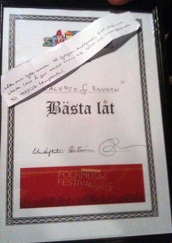 I helgen som gick deltog V-Dala Spelmanslag traditionsenligt i den tionde upplagan av Studentspelmanslags-VM på Linköpings Folkmusikfestival. Efter en hård tävling med 14 deltagande lag från Sverige och Norge kammade vi slutligen hem priset för bästa låt: Paulina Bastvikens calypsoarrangemang av Schottis från Enviken!